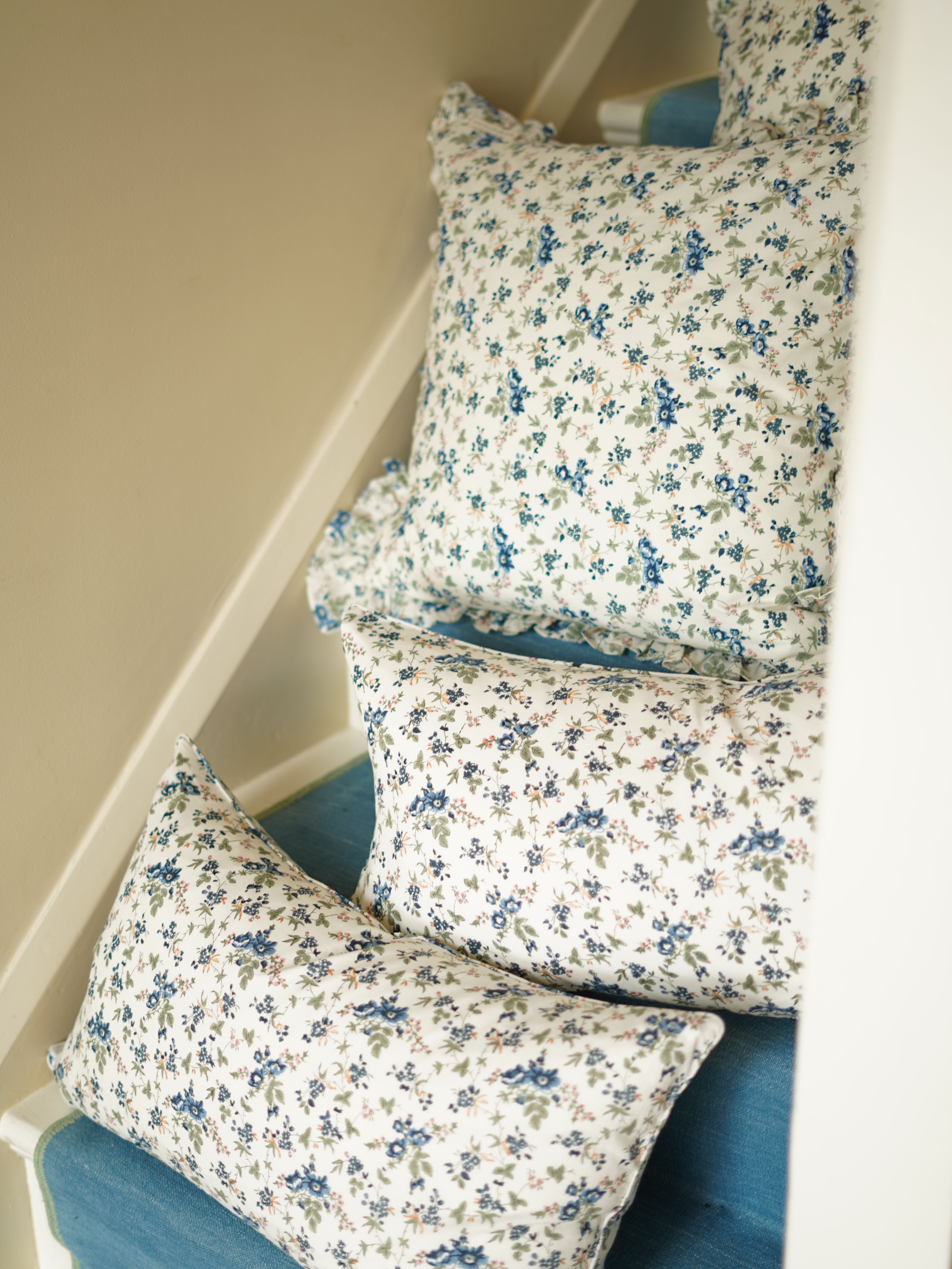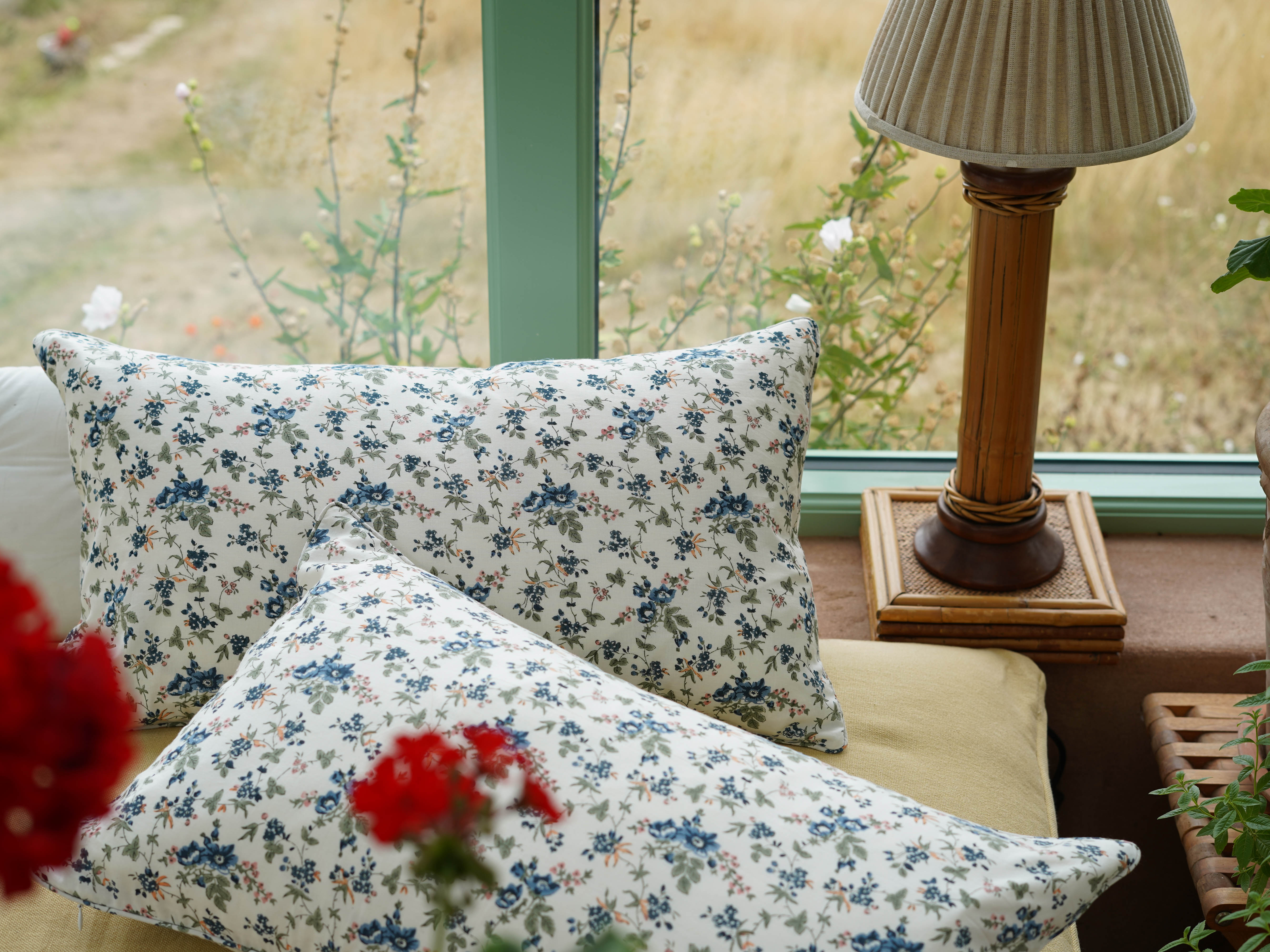 Cotton cushion cover in our very pretty block-print "Rambling Rose'.