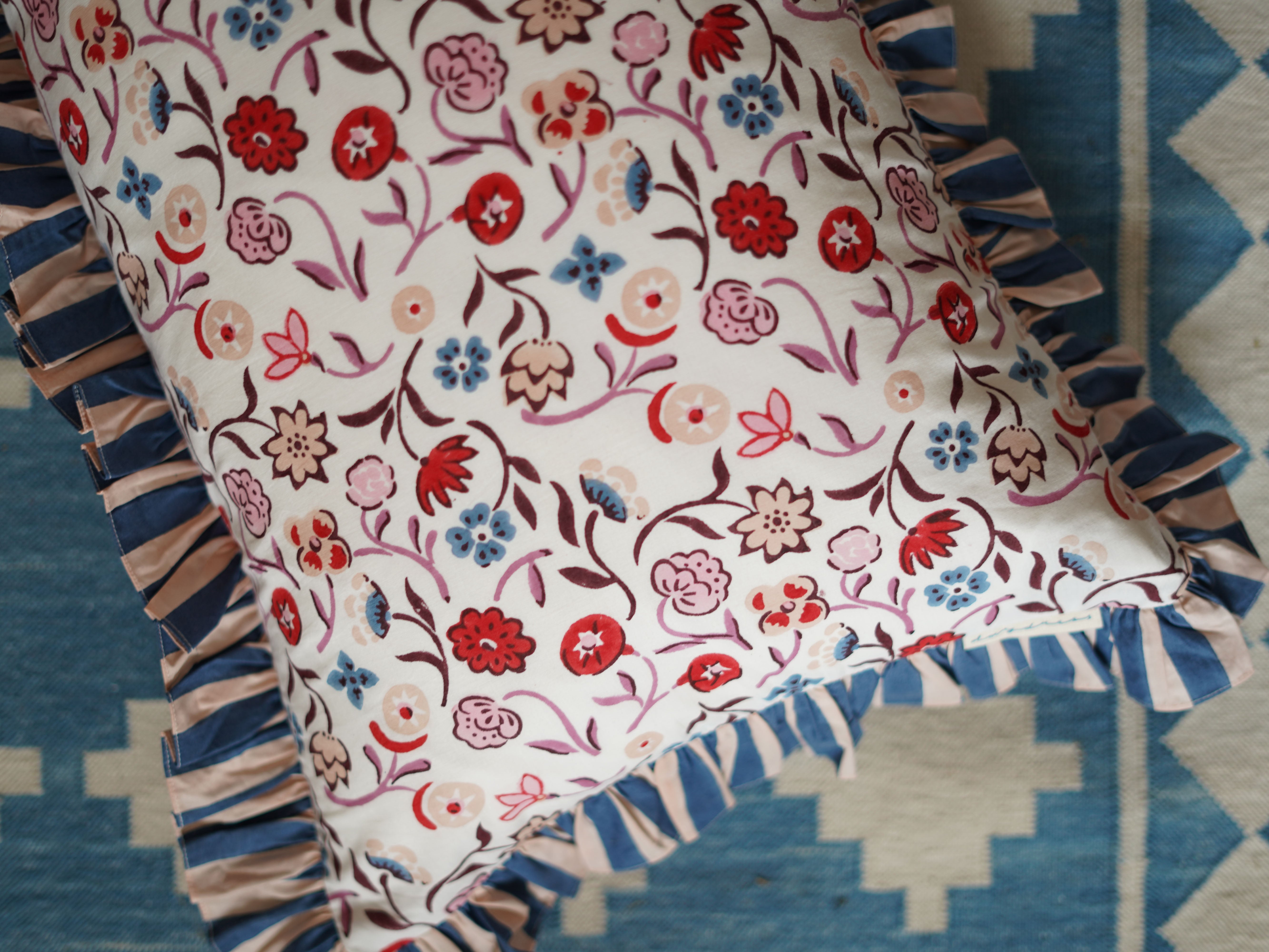 Cotton cushion cover in our very pretty block-print "Enid'.
