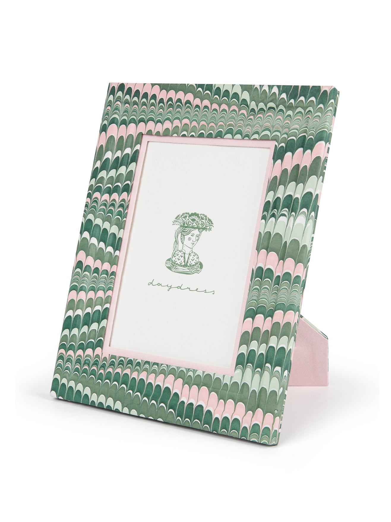 These frames are beautifully covered in hand-marbled cotton paper. Each one is expertly made by hand in Jaipur and has a stand at the back as well as a brass hook if you would like to hang it on the wall.