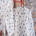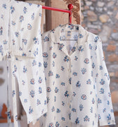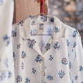 These pyjamas were block-printed, cut, stitched and finished entirely with our close partners in Jaipur. Our nightwear is produced in very small batches to ensure exclusivity and complete control and care in production.
