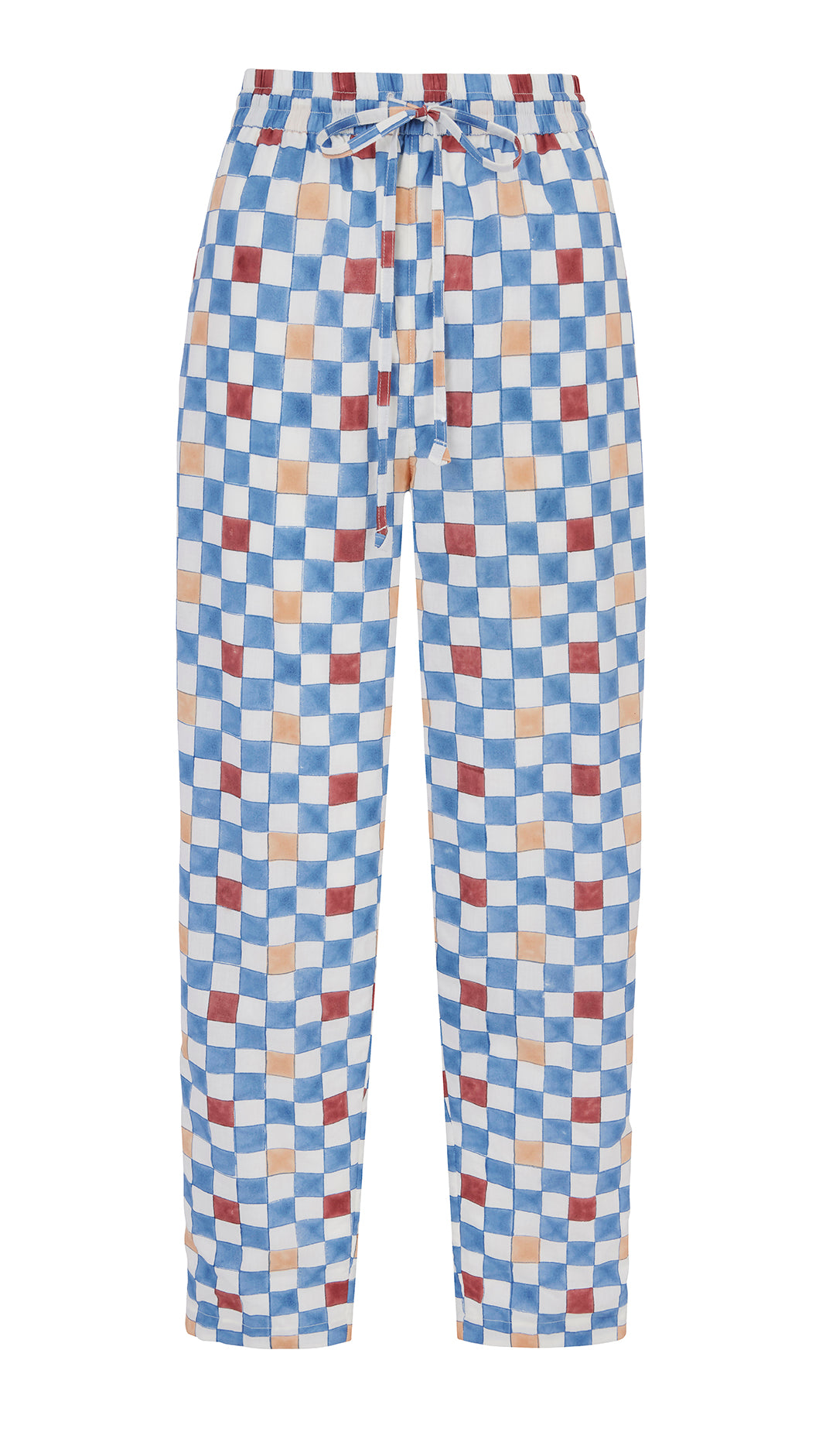 Simple and useful straight leg cotton trousers, fully lined in soft voile with a drawstring waist and side pockets.