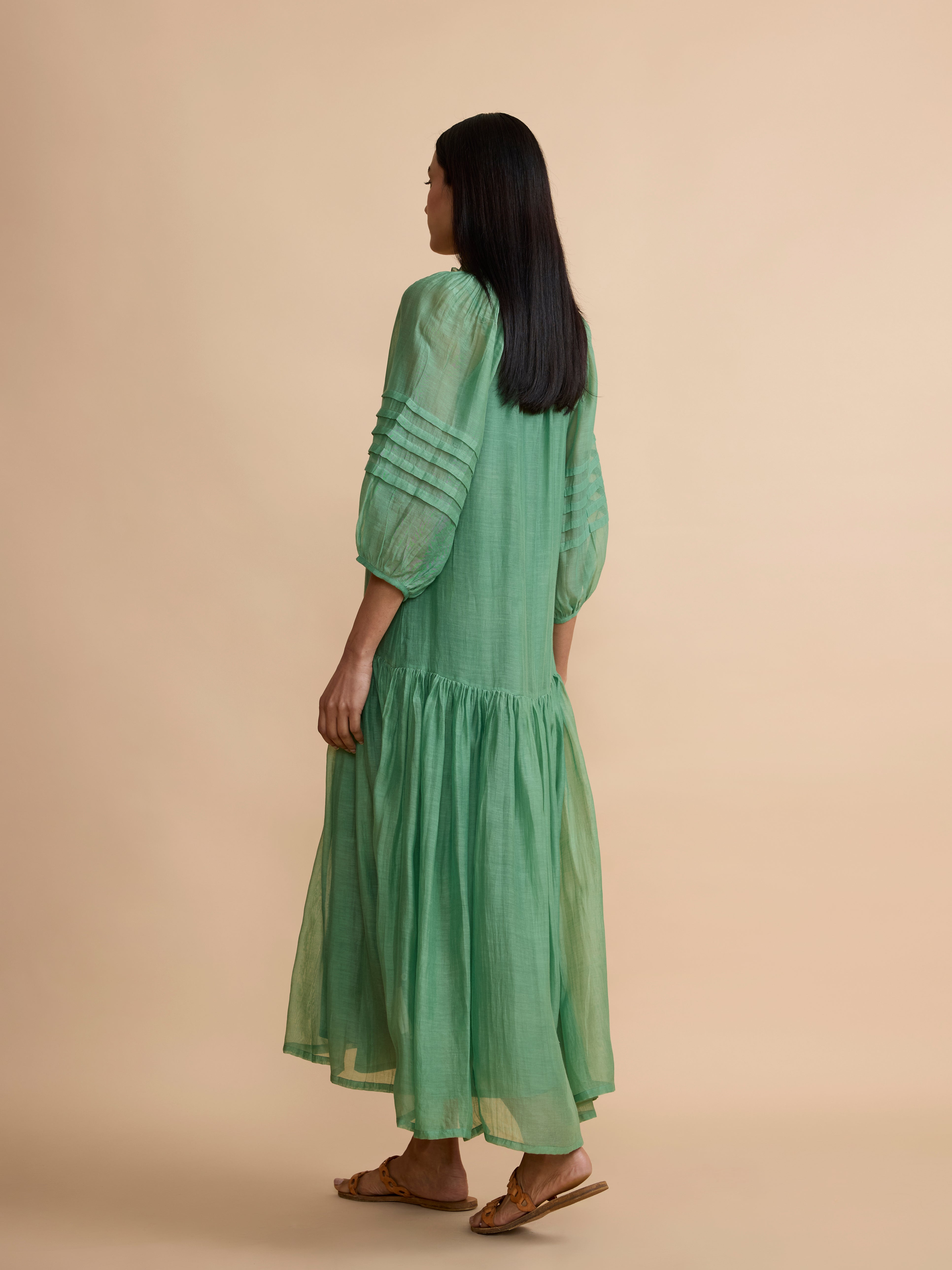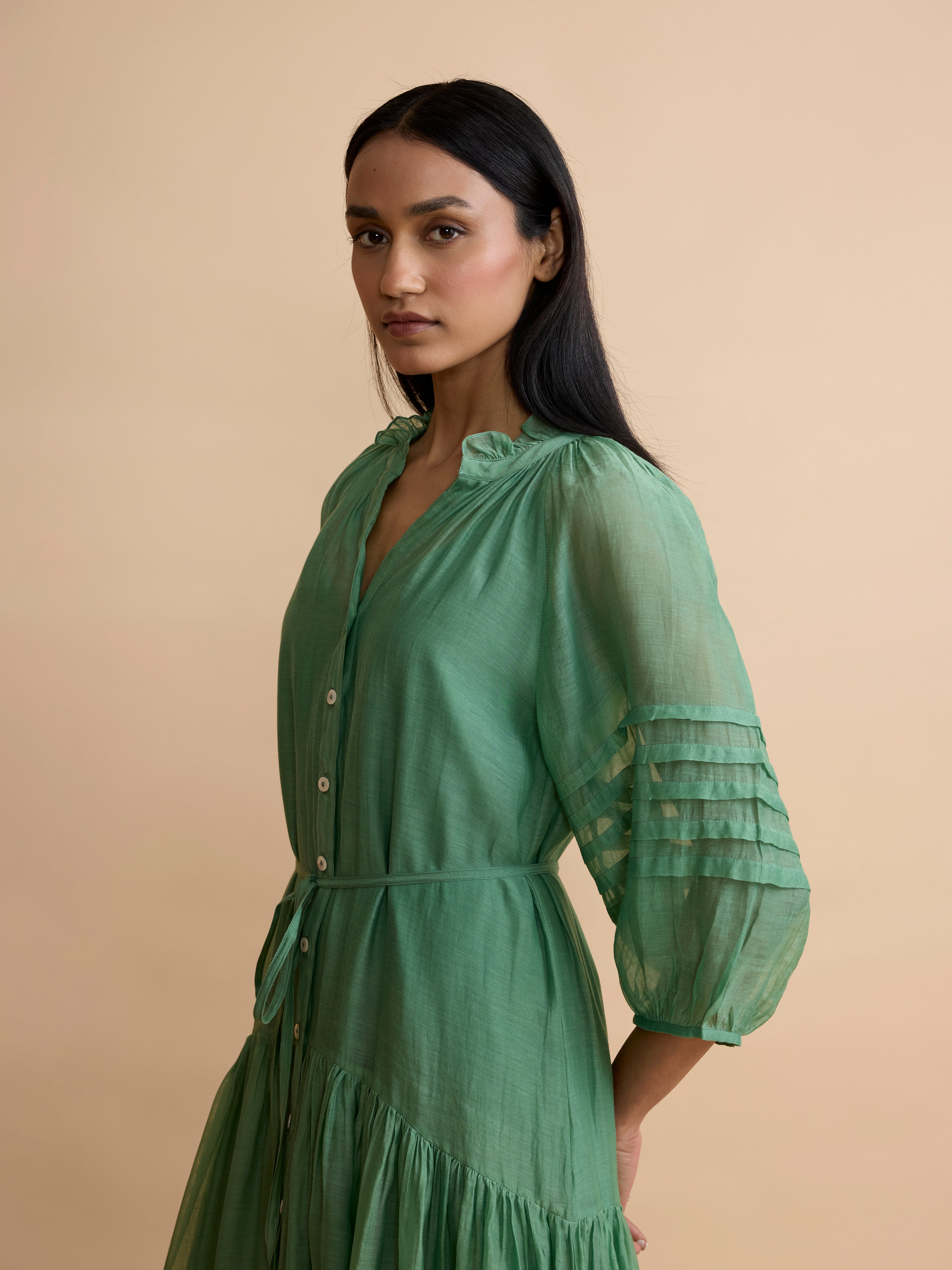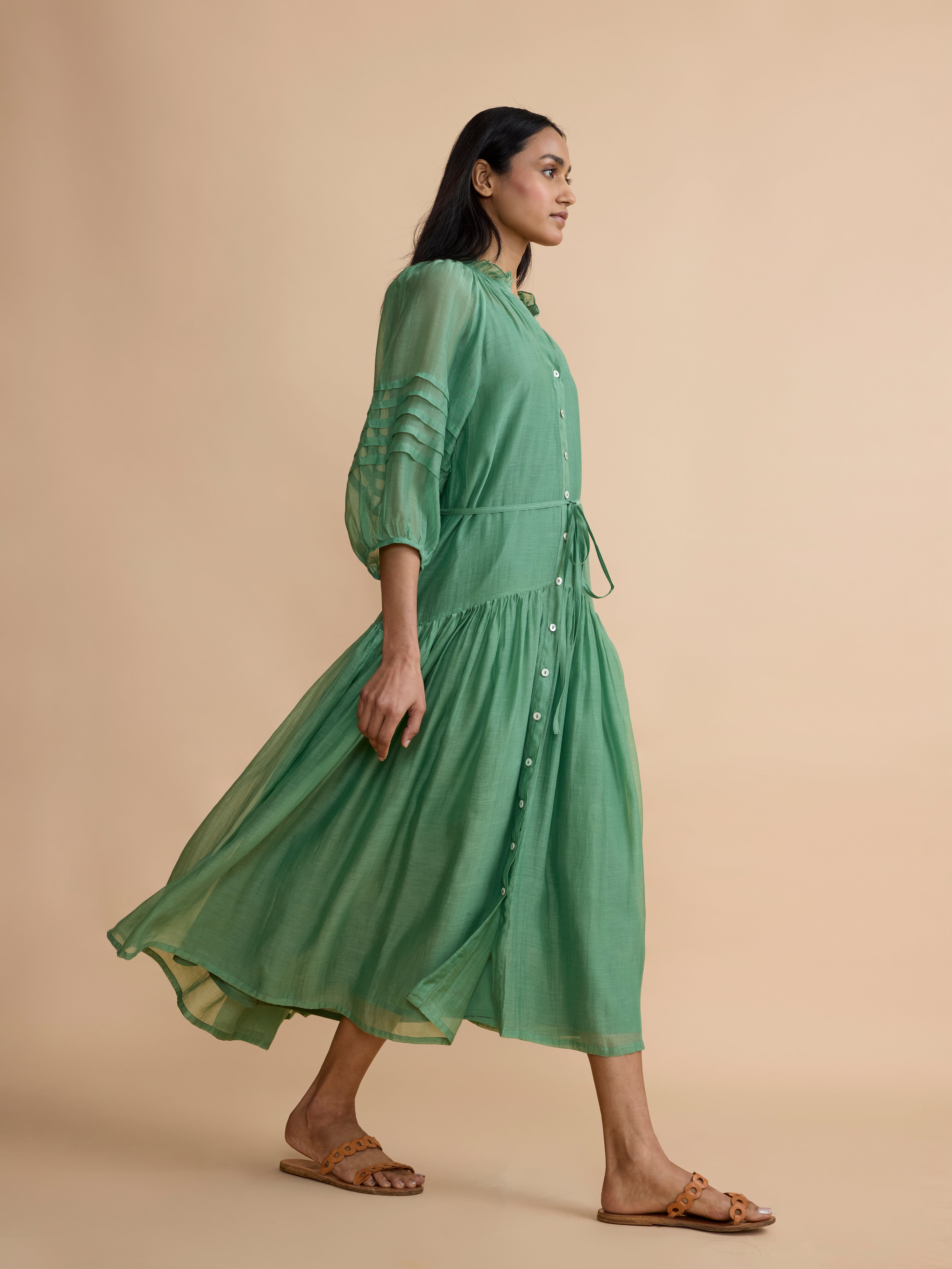 Our new Hudson is an elegant cotton/silk shirt dress full of fine details to help it travel with ease from daytime to informal events. With a dropped curved waist, shoe-lace belt with delicate knife-pleats to the sleeves.