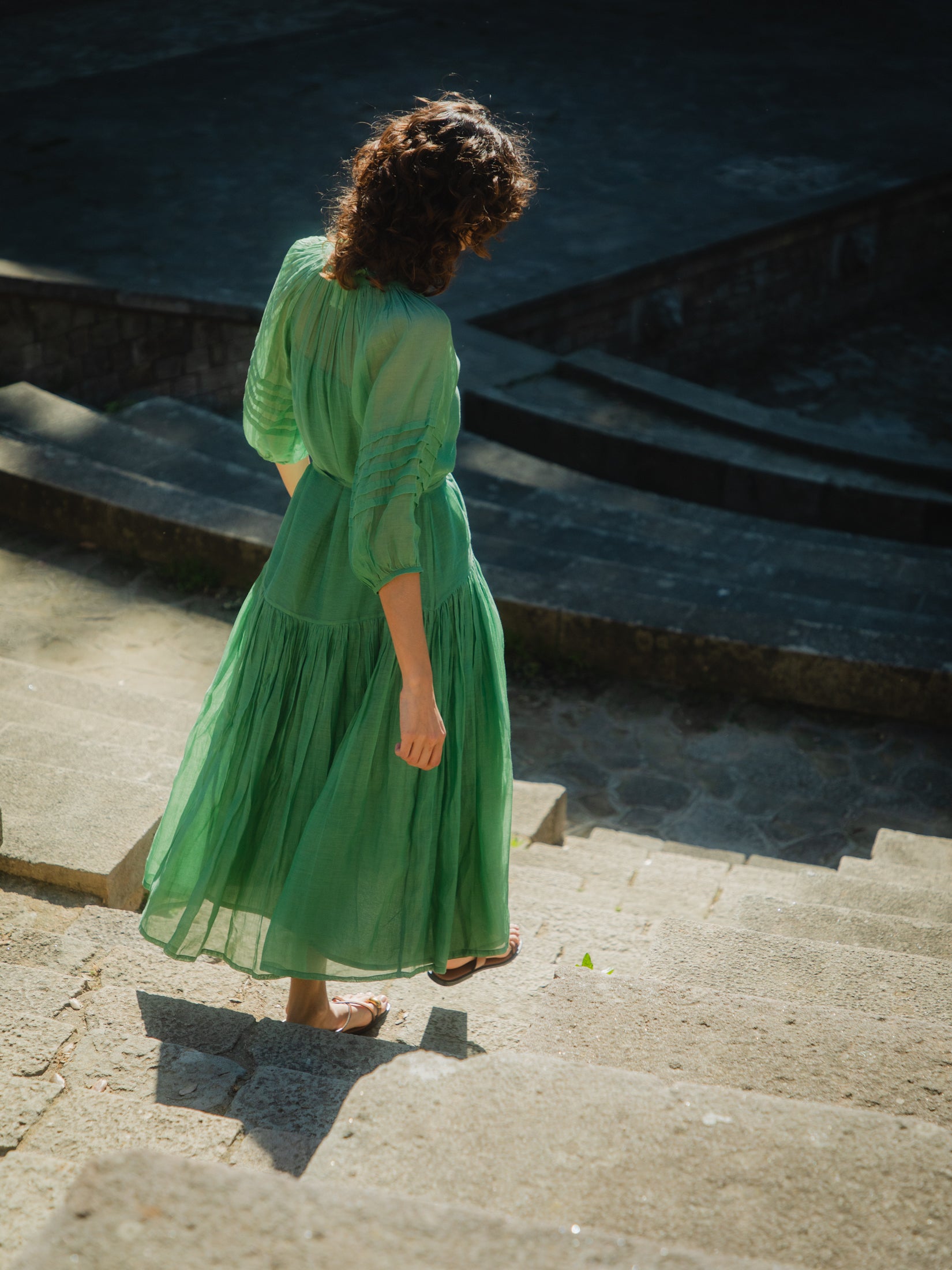 This piece was cut, stitched and finished entirely with our close partners in Jaipur. Our garments are produced in very small batches to ensure exclusivity and complete control and care in production.