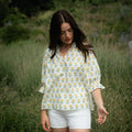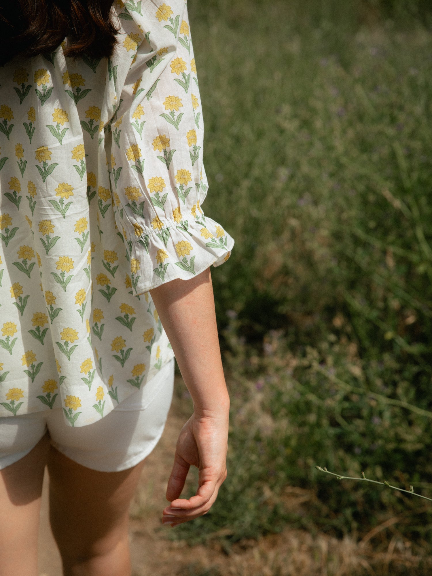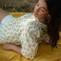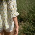 This piece was hand block printed, cut, stitched and finished entirely with our close partners in Jaipur. Each design is produced in small batches of around 30-60 pieces to ensure exclusivity and complete control and care in production.