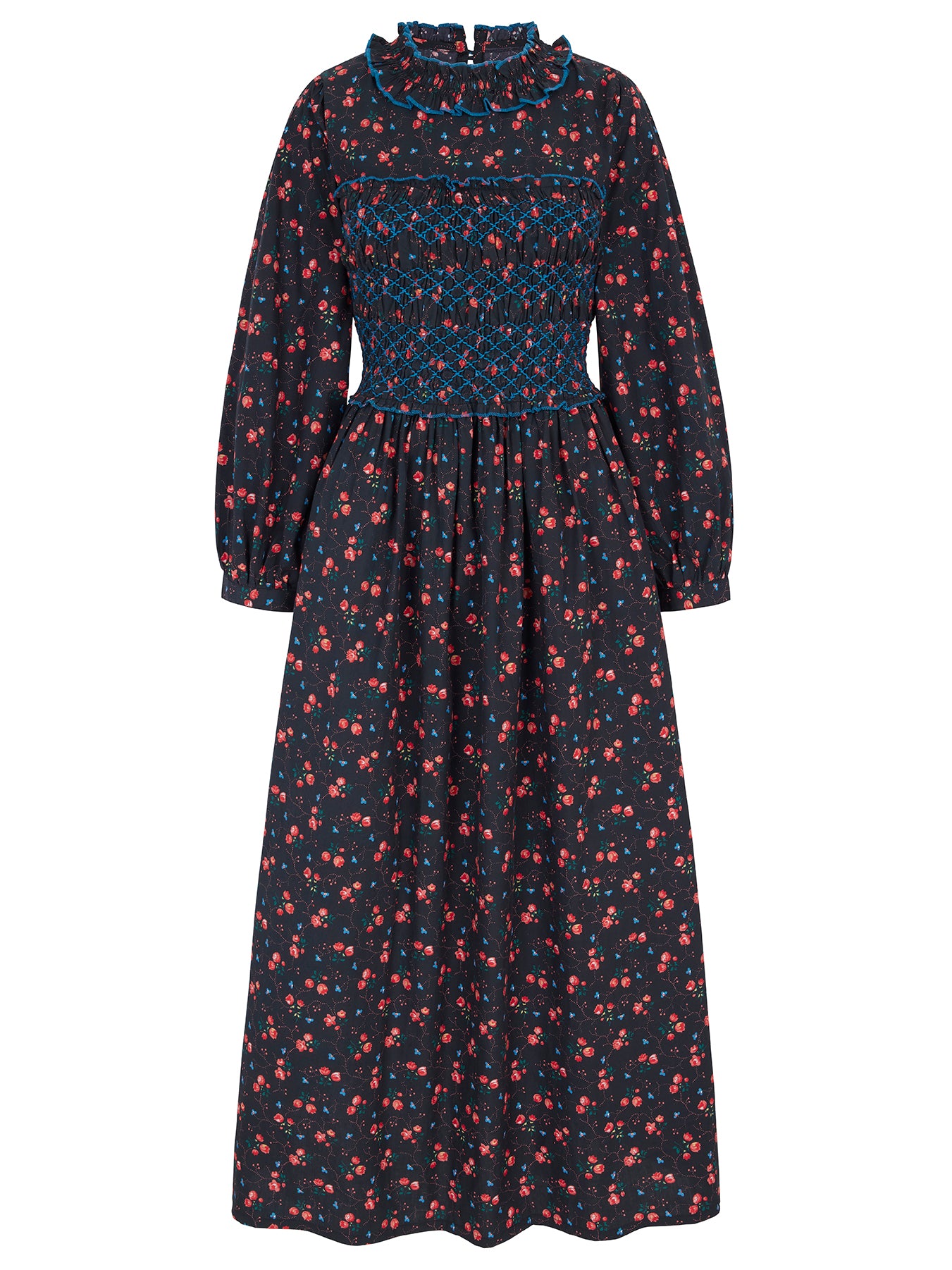 Beautiful hand-embroidery on an antique French fabric design give the Arles dress its heirloom feeling. Although smocked this dress is not tight on the bodice, every detail shines, making this a real show-stopper.