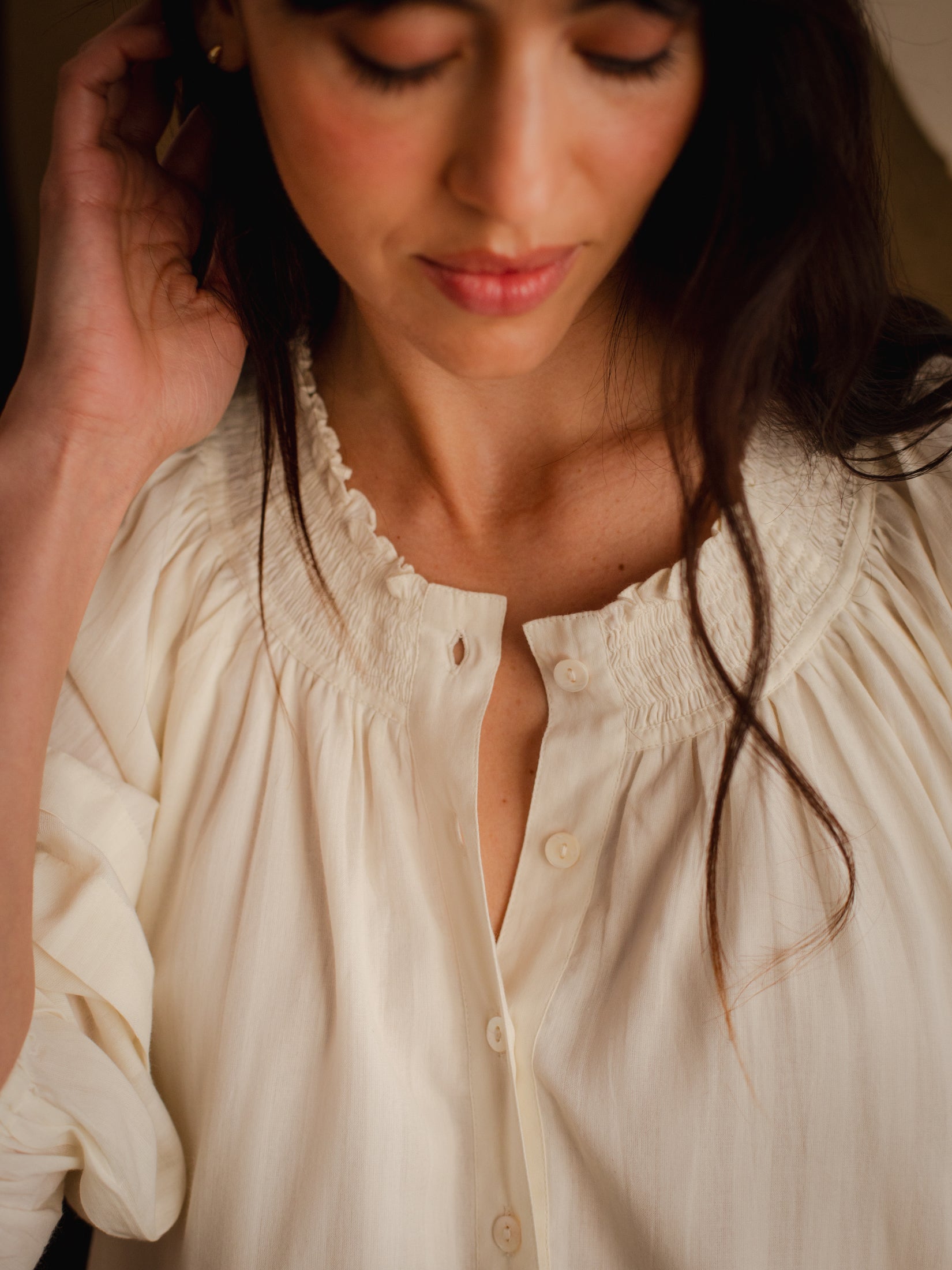 This piece was cut, stitched and finished entirely with our close partners in Jaipur. Our garments are produced in very small batches to ensure exclusivity and complete control and care in production.
