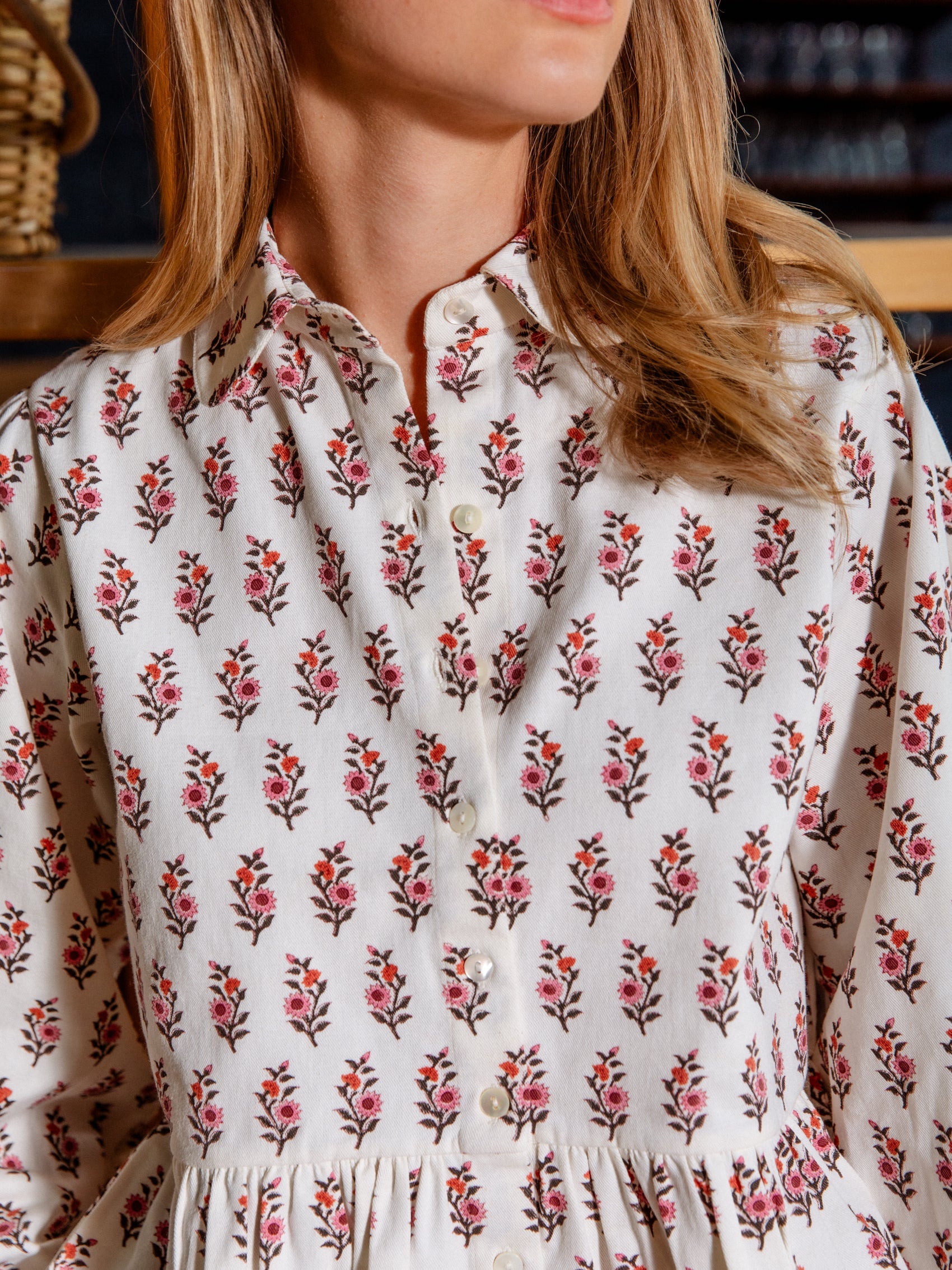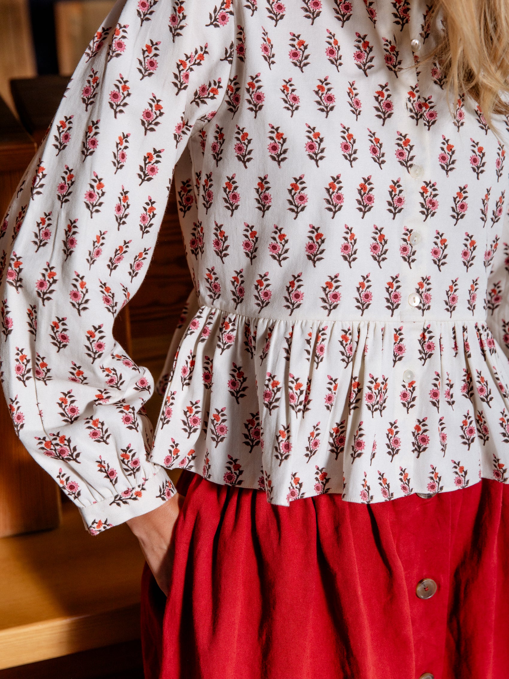 This piece was block-printed, cut, stitched and finished entirely with our close partners in Jaipur. Each design is produced in small batches of around 30-50 pieces to ensure exclusivity and complete control and care in production.
